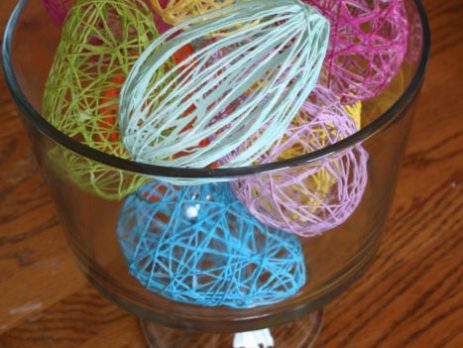 Prosegue l'abbellimento della nostra tavola e delle nostre case in occasione della Pasqua che arriverà a breve.Ecco a tutti un altro tutorial simpatico e abbastanza veloce nella realizzazione (forse ci vuole un po' di pazienza per l'asciugatura...)Materiale occorrente:Filo di cotone colorato, nastri, passamanerieAcquaColla vinilicaPallonciniBacinellaProcedimento:1 - Tagliare dei pezzi di filo abbastanza lunghi, ma non troppo perchè si rischierebbe di farlo annodare. Eventualmente si potranno poi aggiungere altri fili in corso d'opera