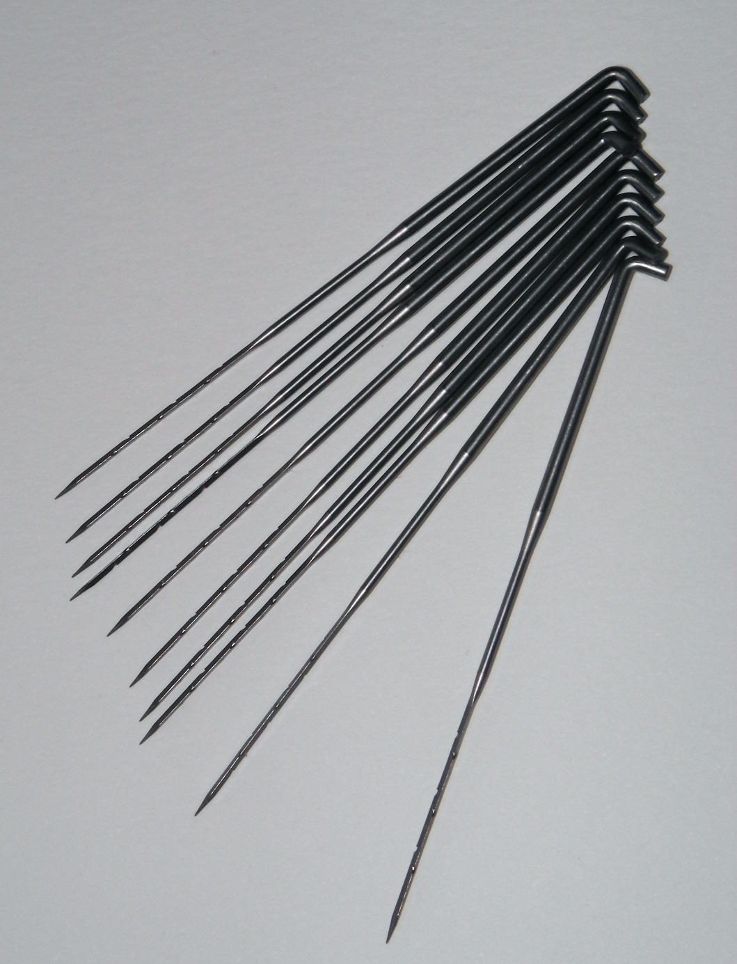 Esistono due misure di aghi per infeltrire la lana cardata: più grossi per lavorazioni “profonde” e più sottili per lavorazioni più in superficie e leggeri.