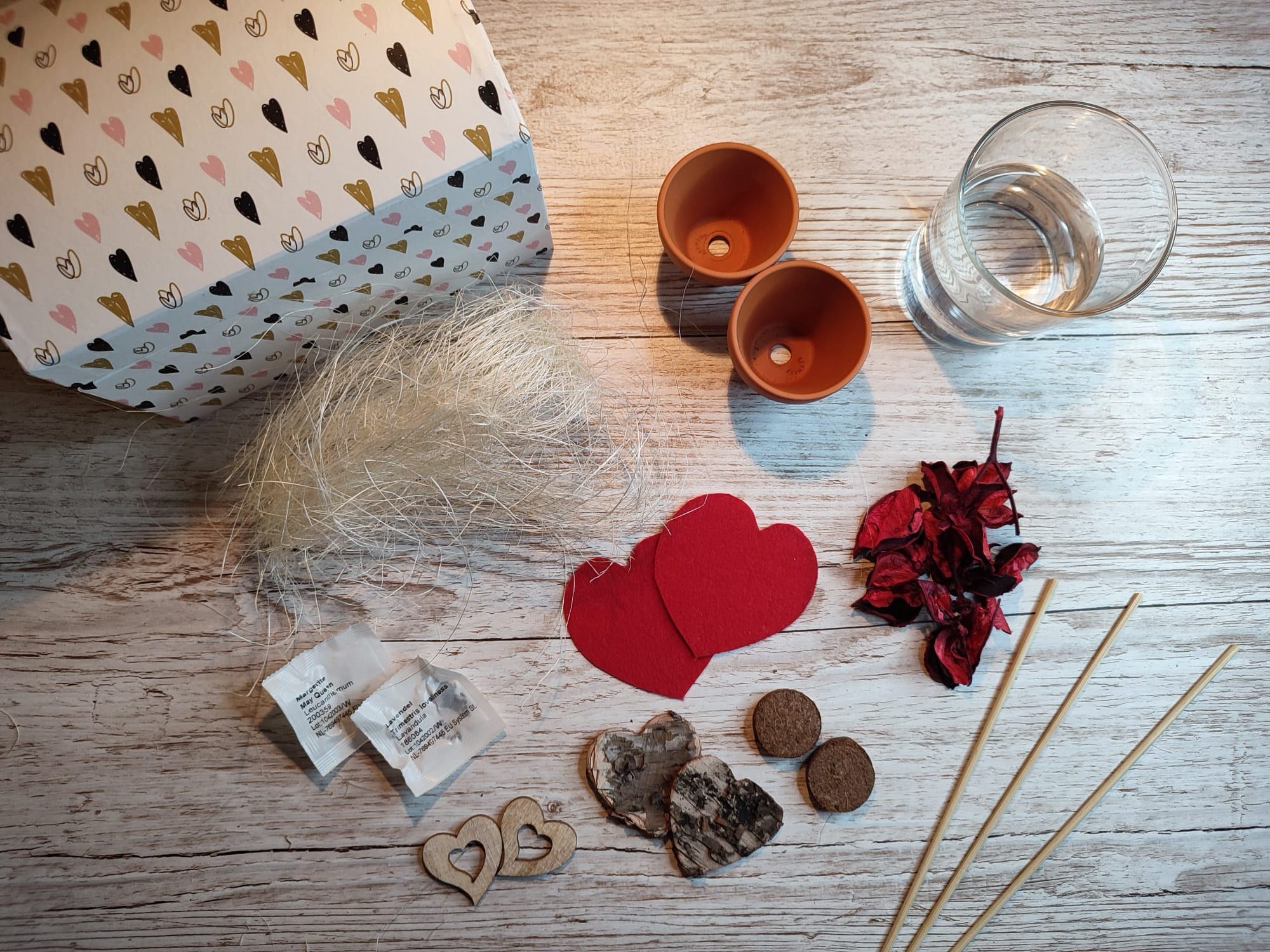 San Valentino… primavera… amore…. crescere…. sbocciare… IDEA! Realizziamo una scatola con all’interno dei vasetti di terracotta dove seminare dei fiorellini da regalare al nostro Lui o alla nostra Lei del cuore per … Far crescere l’Amore!